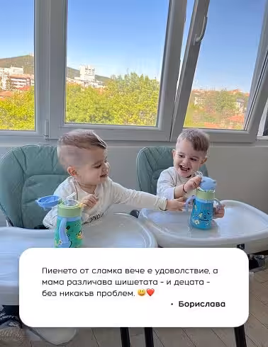Благодарение на вместимостта си от 550 мл и сменящите се капачки – механизъм със сламка (спортна капачка) и стандартна тапа, може да се ползва от деца от 4 до 10-годишна възраст.
